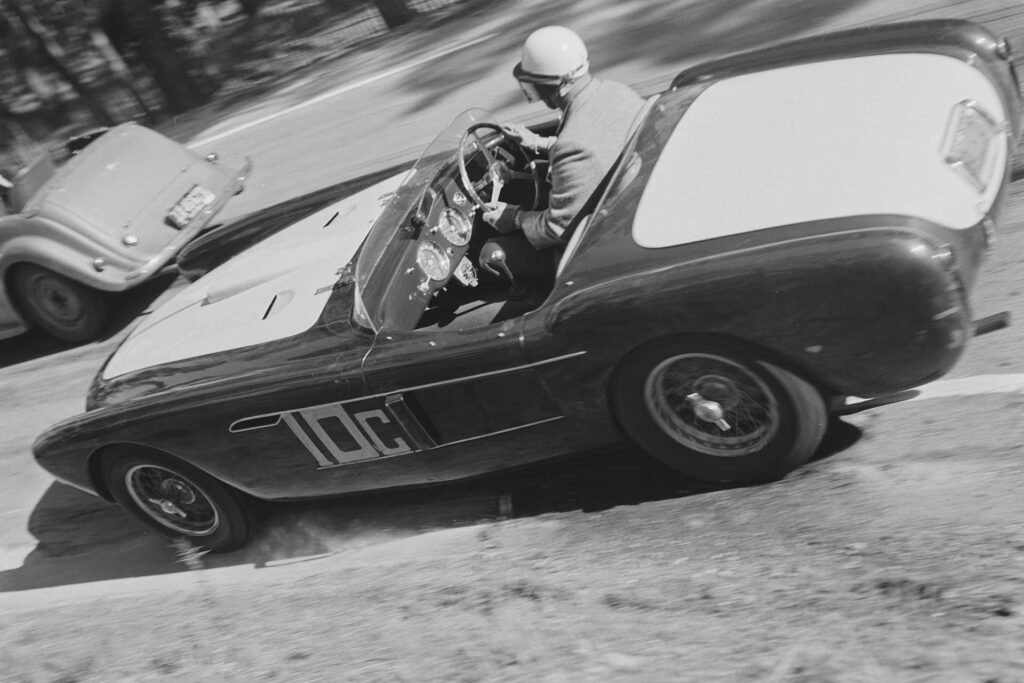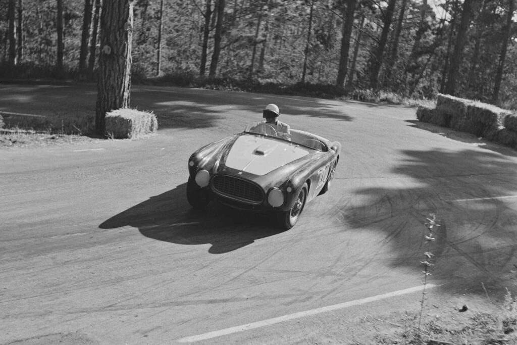 Alberto Ascari stands next to the 340 Mexico that he raced in the 1952 Carrera.