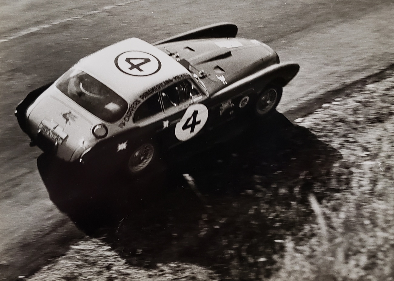 ” -We were sliding towards the edge, and I remember thinking how far we’d fall, because for sure we were going to fall. And over we went, backwards, landed on the roof, bounced onto the wheels and here we stopped. We pulled out our bags, removed our crash helmets, and began to wonder how and when we might get picked up. We scrambled back up the bank, and found the road covered in skid marks. A soldier told us Fangio had nearly gone off there before we’d arrived. There had been a warning sign, but some thrill-seeker had removed it, then settled down with the large crowd to watch the fun — which we’d provided. ” – Inside Track by Phil Hill